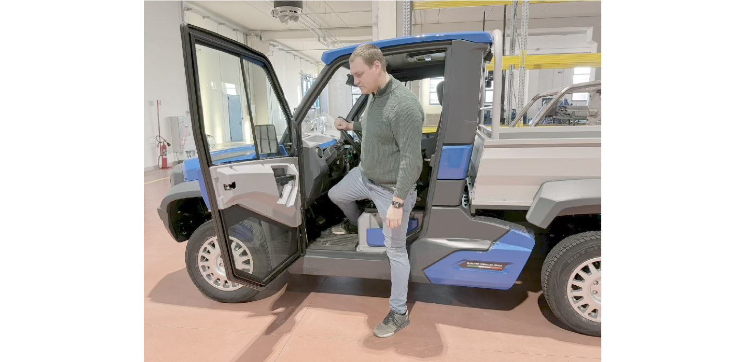 EVI Country s dlouhým rozvorem má díky prodloužené korbě značný nákladový prostor pro přepravu objemných nákladů s účinností a rychlostí 100% elektrického pohonu, vždy s pohonem všech čtyř kol!