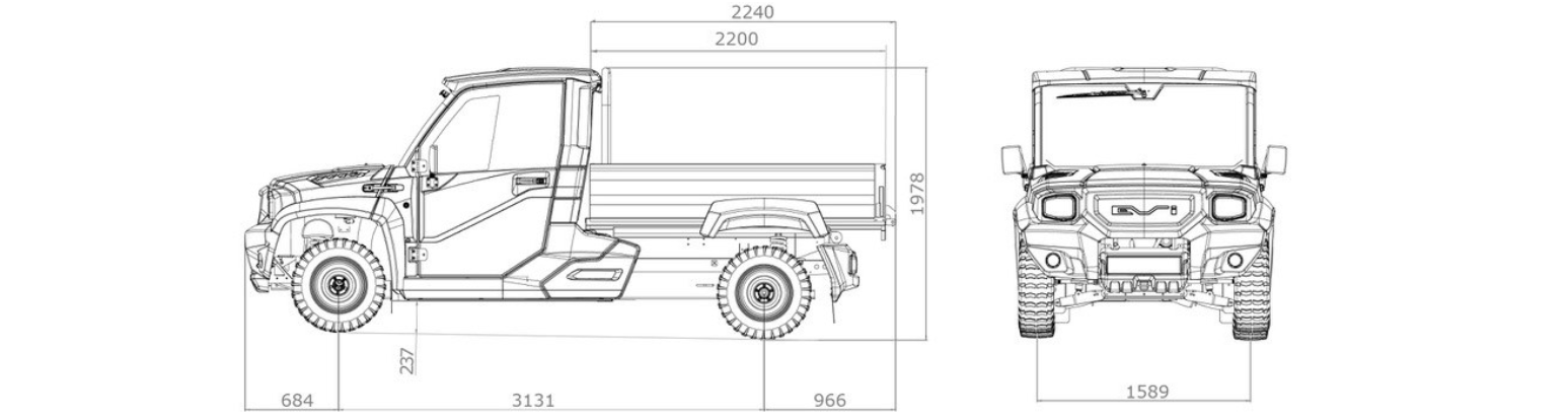 Má korbu dlouhou 2,17 m pro přepravu objemných nákladů a díky nosnosti 1450 kg dosahuje špičkových hodnot ve své kategorii. Vždy kompaktní vnějších rozměrech a díky geometrii řízení se snadno otáčí s poloměrem otáčení pouhých 7,80 m.