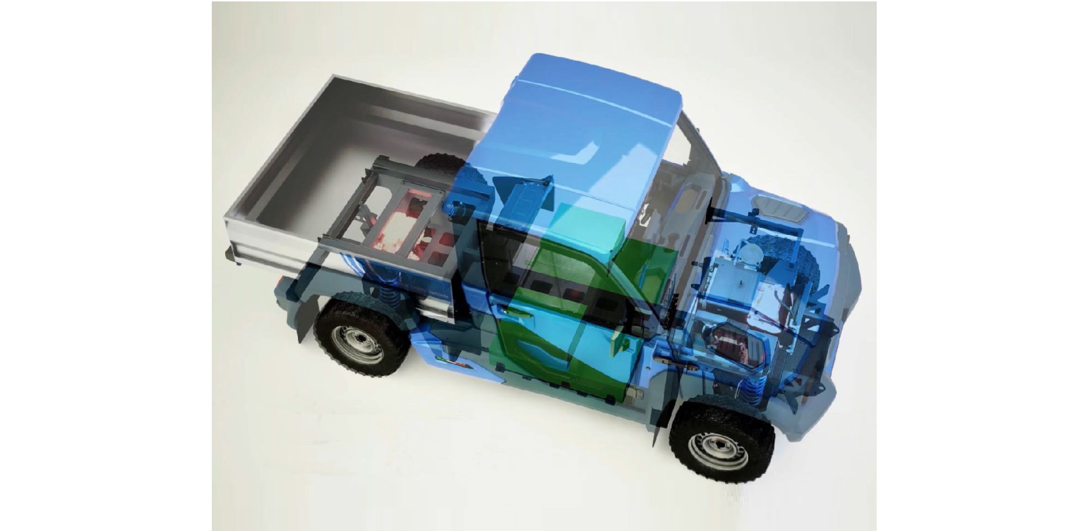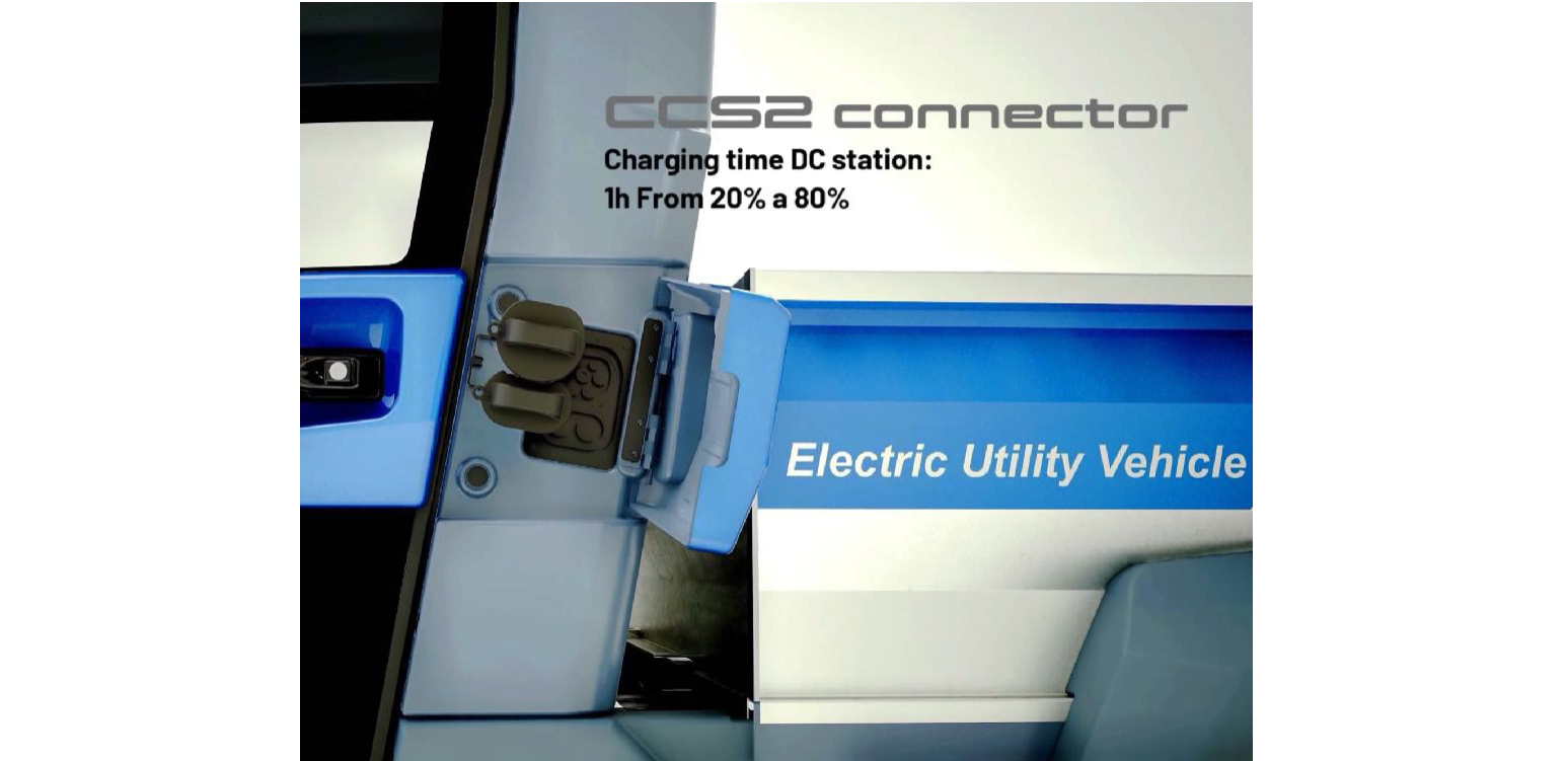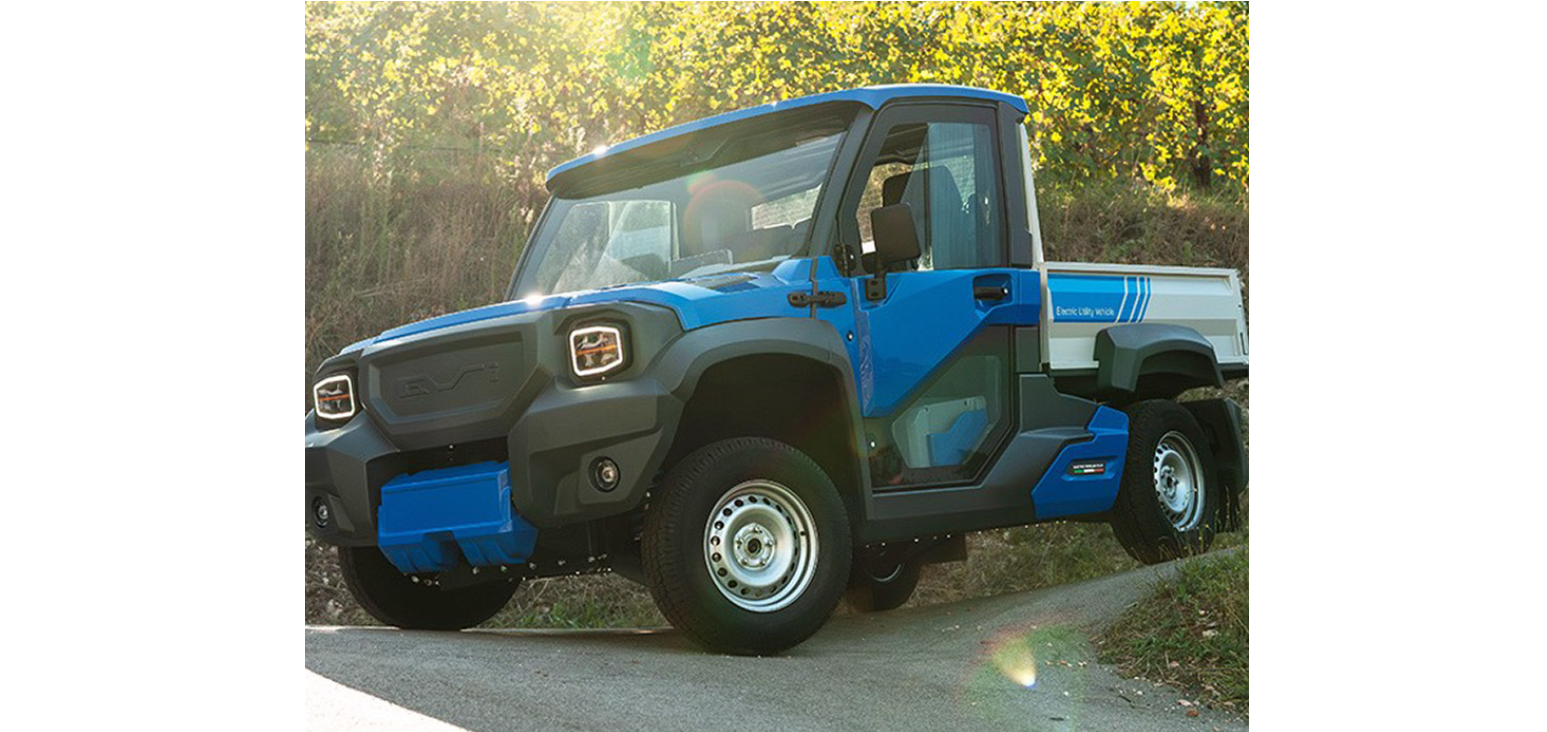 EVI Country s dlouhým rozvorem má díky prodloužené korbě značný nákladový prostor pro přepravu objemných nákladů s účinností a rychlostí 100% elektrického pohonu, vždy s pohonem všech čtyř kol!