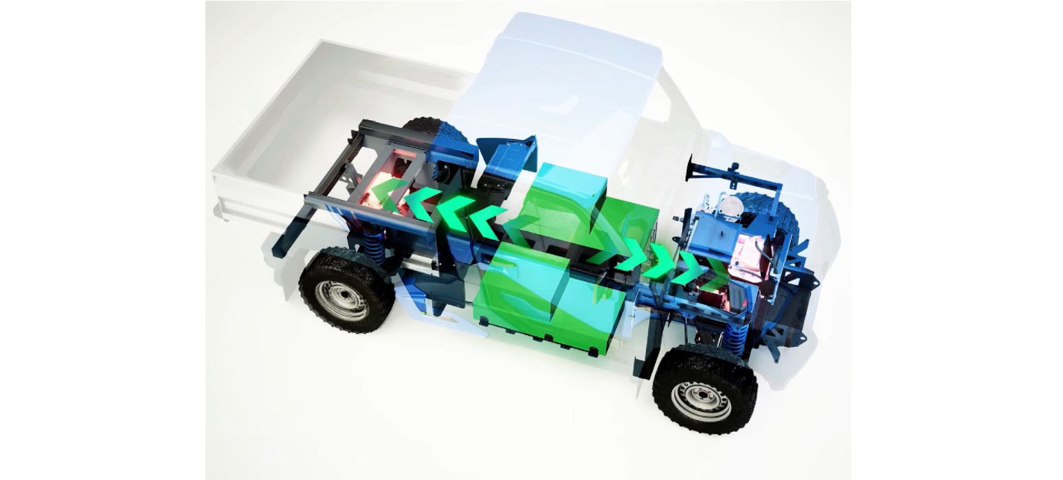 Pohon 4x4 má k dispozici 2 elektromotory s diferenciálem.